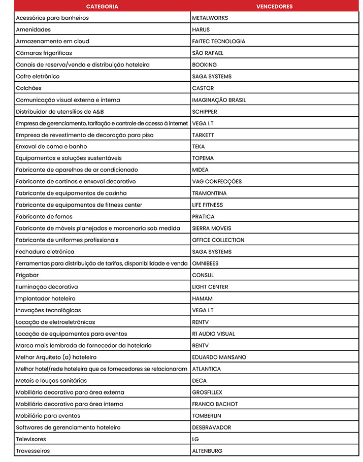 Harus Soluções em Hospitalidade e São Rafael Câmaras Frigoríficas são as únicas empresas que conquistaram o troféu em todas as 13 edições que já aconteceram.